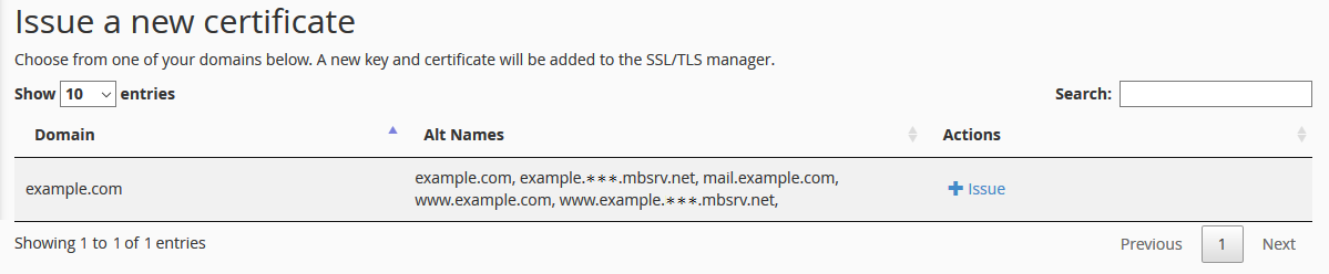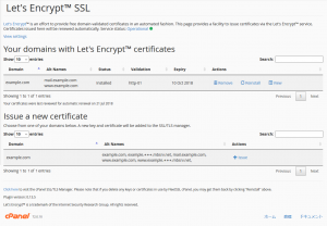 上部の「Your domains with Let’s Encrypt™ certificates」は、すでにSSL証明書を発行済みのドメイン一覧です。