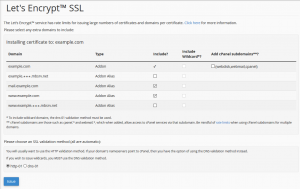 その後、SSL化するドメインの選択画面が表示されますので、SSL化したいドメインの「Include?」部にチェックを付けます。
