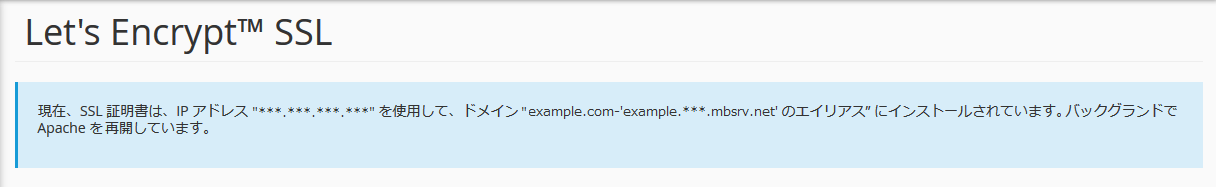 | mail.example.com | メールの通信もSSL化したい場合はこちらにチェックを付けます。 |