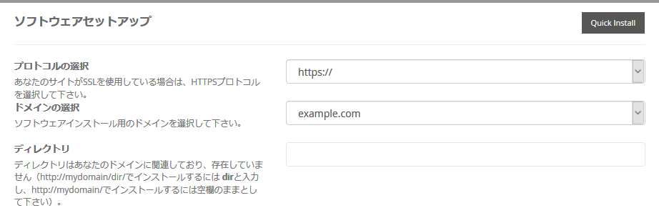 ※ディレクトリを空白にすると、https://example.com といった感じでアクセスできるようになります。