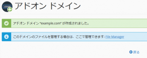 アドオン ドメイン “・・・入力したドメイン・・・” が作成されました。