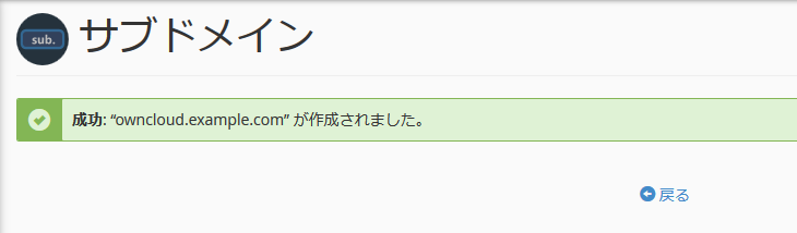 サブドメイン:owncloudを入力