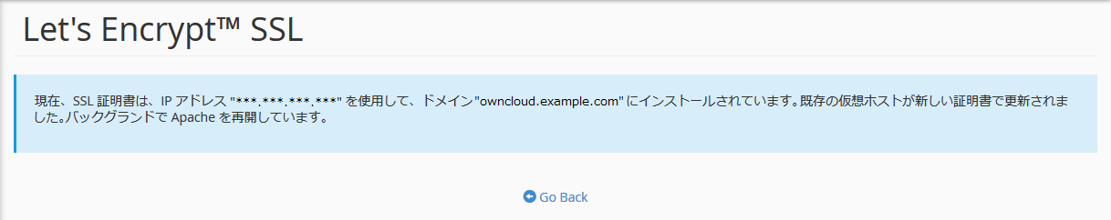 | owncloud.example.com | https://owncloud.example.com といったアドレスでアクセスしたい場合はこちらにチェックを付けます。 |