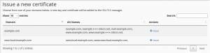 するとLet’sEncryptの管理画面が表示され、下部の「Issue a new certificate」に、自分が管理しているドメインの一覧が表示されます。